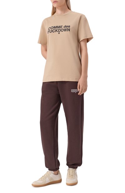 Бежевая футболка с короткими рукавами громко заявляет о своей принадлежности бренду: Массимо Джорджетти украсил модель спереди крупным белым логотипом. Для пошива изделия использовали мягкое джерси из отборного хлопка с длинными шелковистыми волокнами. Плотное переплетение нитей сделало материал гладким и прочным, поэтому он сохранит безупречный вид даже после множества стирок.