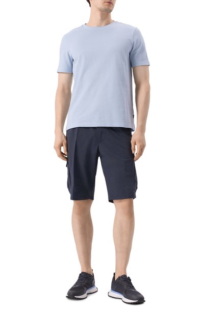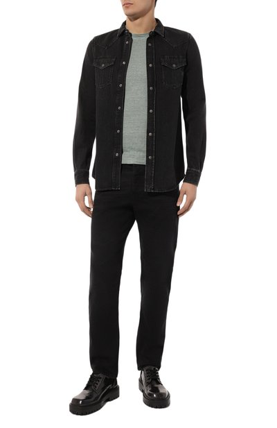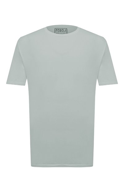 Светло-зеленая футболка с круглым вырезом и короткими рукавами сшита из гладкого эластичного джерси на основе премиального египетского хлопка. Его длинные тонкие волокна намного прочнее обычных, поэтому изделия из такого трикотажа не растягиваются и не пилингуются. Лаконичная модель украшена сзади небо льшим логотипом марки.