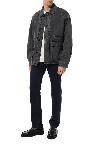 Лаконичные синие джинсы от марки, основанной Стефано Риччи, возьмут на себя роль любимой базы в повседневном гардеробе. Плотный деним сочетает высокую прочность и способность пропускать воздух, а также слегка тянется. Единственным декором модели сделали небольшой барельеф с профилем орлиной головы, который окружили орнаментом на заднем правом кармане.