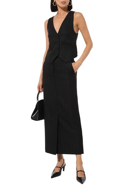 Черные лаконичные туфли Chanel Bella смогут стать универсальным решением в гардеробе, ведь они сочетаются с одеждой и нейтральных, и ярких оттенков. Для изготовления модели с зауженным мысом и высокой шпилькой Энио Силла выбрал гладкую лакированную кожу. Открытый задник дополнили узким ремешком с эластичной вставкой.