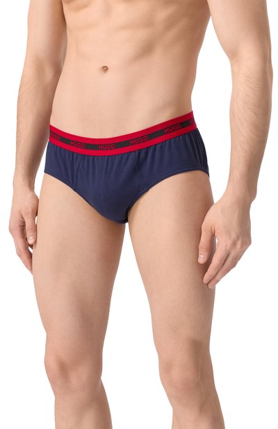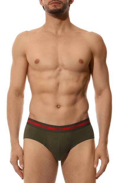 Для пошива брифов использовали мягкий эластичный трикотаж на основе органического хлопка. Широкий пояс-резинку украсили красной полосой фирменного алого оттенка с паттерном из логотипа. В комплекте – еще две аналогичных модели.