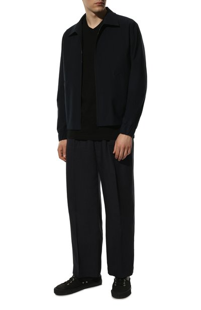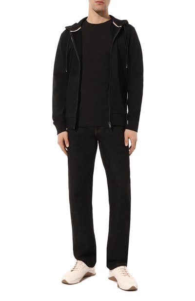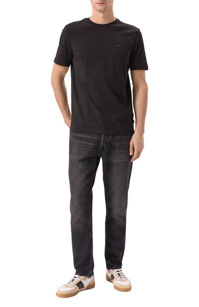 Черная футболка подружится с вещами разной палитры и степени сложности. Модель выполнили из шелковистого мерсеризованного хлопка. Нити, очищенные от лишнего пуха, делают трикотаж не только мягче, но и прочнее. Органическое сырье вырастили без токсичных химикатов.