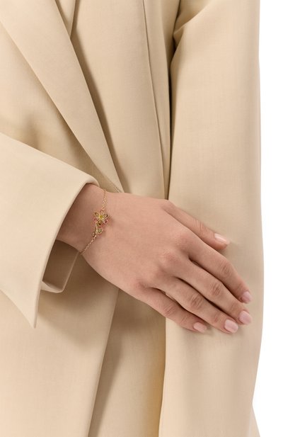 Браслет из коллекции Teddy дополнили подвеской-медвежонком, покрытой кристаллами в закрепке Pointiage®. Основу аксессуара составили из жемчужных бусин и крупных латунных звеньев с золотистым покрытием. Длину аксессуара с застежкой-карабином можно отрегулировать цепочкой с фирменной эмблемой на конце.