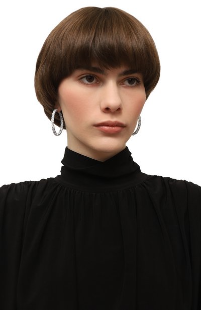 Серьги-кольца из ювелирного сплава с гальваническим покрытием родием делает особенно выразительными яркий блеск полупрозрачных миниатюрных кристаллов, словно вырезанных изо льда. Каждый из камней удерживают по четыре крапана, поэтому они максимально открыты свету.