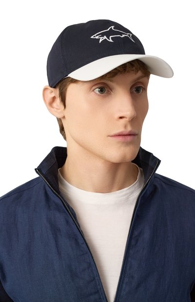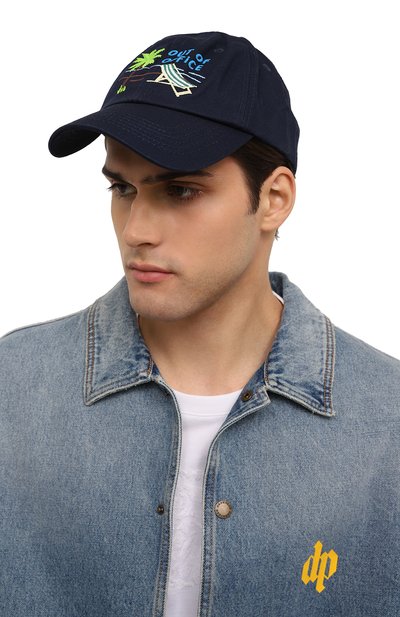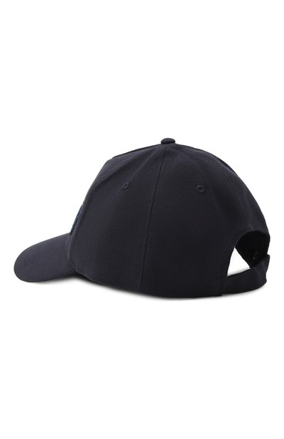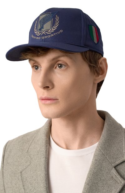 Для пошива темно-синей бейсболки использовали легкий, хорошо пропускающий воздух хлопковый твил. Материал не деформируется со временем, поэтому аксессуар надолго сохранит безупречный вид. Изделие с регулируемым ремешком декорировали тотемным орлом, вышитым белыми нитями.