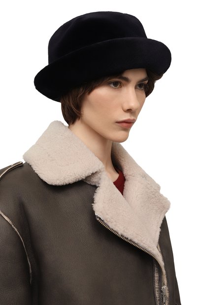Серебристо-серую шляпу без полей адаптировали для теплой погоды. Модель выполнили из ажурного дышащего материала на основе прочной пеньки, напоминающего легкую сетку. На тулью повязали широкий платок из блестящего шелковистого атласа стального оттенка.