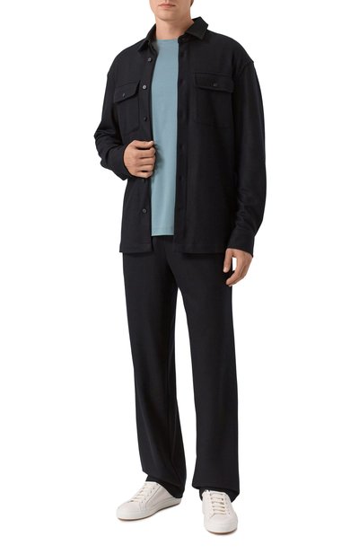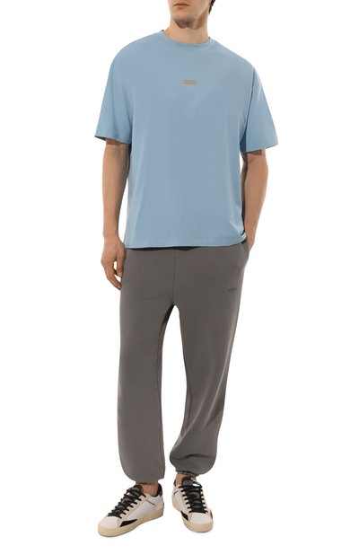 Базовую футболку Dero прямого кроя выполнили из хлопкового джерси. Спереди модель с круглой горловиной в рубчик украсили небольшим контрастным логотипом марки.