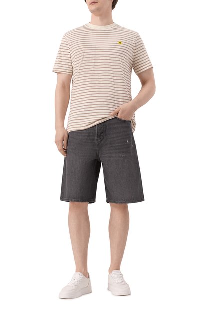 Для пошива футболки Dapolino со спущенной линией плеч использовали джерси из чистого хлопка. Спереди модель украсили небольшим рельефным логотипом.