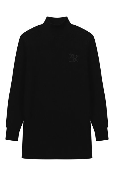 Черное платье напоминает лонгслив лаконичным прямым кроем с длинными рукавами и легким дышащим джерси из чистого хлопка. Базовую модель украсили контрастной эластичной лентой с логотипом бренда, которая формирует приталенный силуэт.