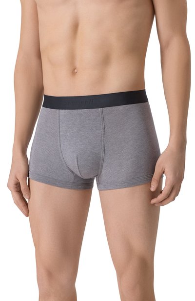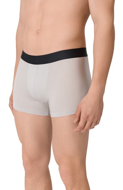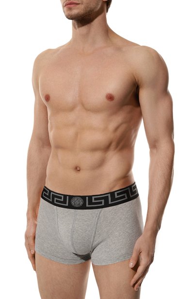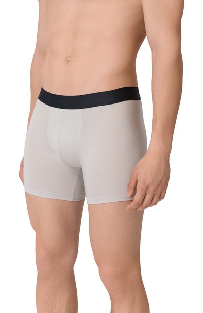 Анатомически выверенный крой и гладкий эластичный материал делают посадку серых боксеров по фигуре максимально комфортной. Для изготовления облегающих трусов использовали хлопковое джерси, которое хорошо пропускает воздух. Широкий пояс декорировали спереди логотипом бренда.