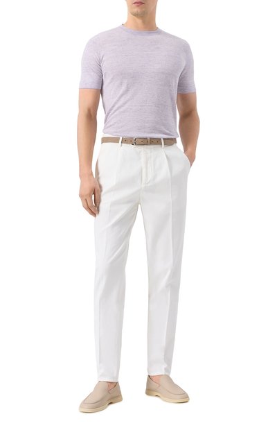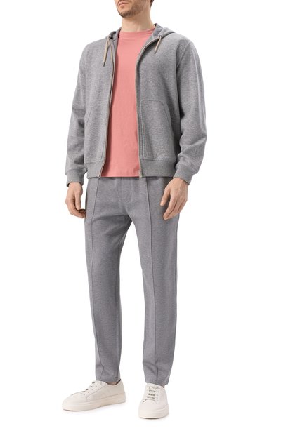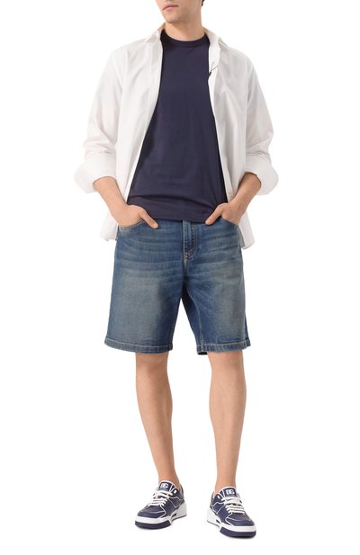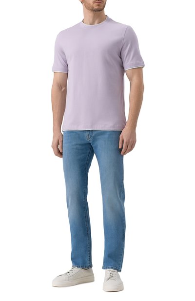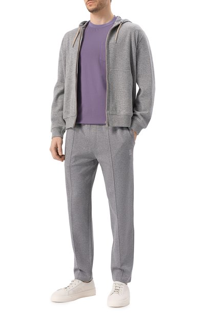 Лаконичную футболку из хлопкового джерси наши стилисты предлагают носить со спортивными брюками и кедами. Низ, манжеты и круглую горловину модели дополнили контрастными вставками.