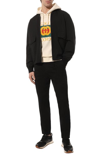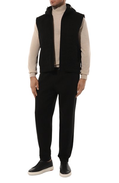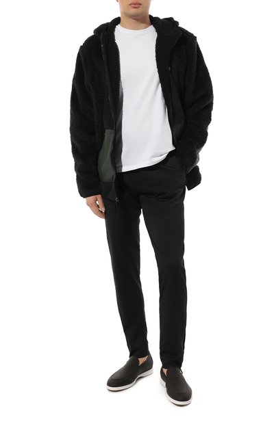 В линию Travelwear, созданную для комфорта во время отдыха и путешествий, вошли черные джоггеры с прошитыми стрелками и четырьмя карманами. Для изготовления модели использовали мягкий хлопковый футер с приятной на ощупь изнанкой, который поддерживает оптимальный микроклимат тела и обеспечивает свободу движений. Для комфортной посадки на талии предусмотрен регулируемый контрастным шнурком пояс-кулиска.