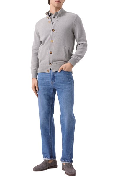При создании светло-серого поло привычному пике предпочли трикотаж с рифленой фактурой, который идеально тянется в ширину. Исключительно приятный на ощупь материал связали из нежного премиального хлопка, хорошо пропускающего воздух, а в гладкости и прочности не уступающего шелку. Изделие с узкой белой полоской по краю манжетов застегивается тремя пуговицами.
