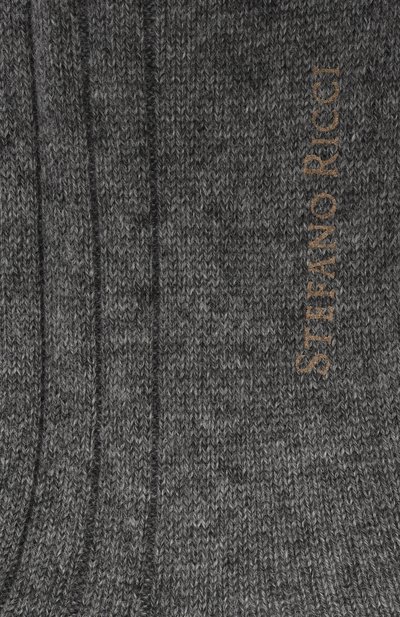 Принадлежность носков марке обозначили фирменной геральдической эмблемой под ребристой манжетой. Декор перекликается серым цветом с рельефной меловой полоской на трикотаже из чистого хлопка.