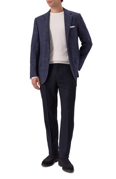 Темно-синие лоферы с рельефным швом на союзке одинаково хорошо дополнят образ и с джинсами, и с формальными брюками. Для пошива модели мастера марки, основанной Джоном Ричардсоном Барреттом, использовали особенно мягкую и эластичную кожу оленя. Отказ от плотной внутренней отделки сделал туфли на плоском каблуке мягче и легче.
