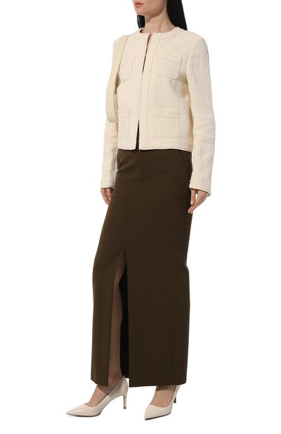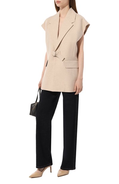 Лодочки цвета карамели абсолютно универсальны. Классический силуэт с острым мысом и каблуком средней высоты, пластичная яловая кожа, быстро принимающая форму стопы, лаконичный дизайн — модель будет органично смотреться и с деловым костюмом, и с джинсами. Единственный элемент декора — небольшая брендированная пластина на заднике.