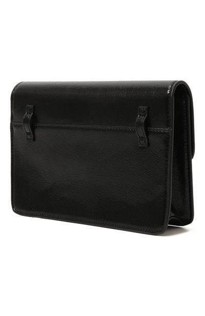 Белую прямоугольную сумку с рельефным логотипом на клапане изготовили из гладкого полиуретана, напоминающего мягкую кожу. Узкий регулируемый ремень позволяет носить аксессуар со шлевками на задней панели не только в руке или на плече, но и на поясе. Внутрь поместятся смартфон, зеркало и гигиеническая помада.