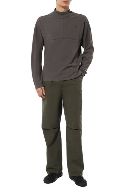 Кеды S-Ukiyo V2 с перфорацией выполнили из матовой кожи двух оттенков, а для внутренней отделки выбрали сетчатый трикотаж. На язычке разместили нашивку с логотипом и слоганом марки, а по бокам расположили аппликации в виде эмблемы.