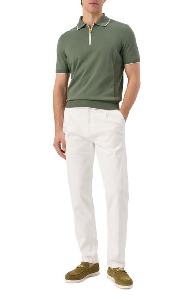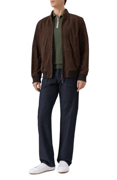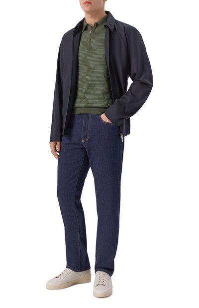 На зеленом поло прямого кроя вышили нитями в тон эмблему Royal Eagle, а пуллер молнии с гальваническим покрытием украсили гравированным логотипом марки, основанной Стефано Риччи. Небольшая фирменная символика не перетягивает на себя внимание, поэтому модель из шелковистого премиального хлопка выглядит лаконично.