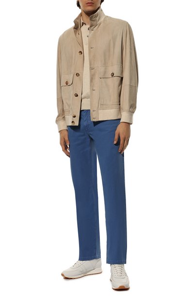 В брюках из прочного льна будет одинаково комфортно и в летнем городе, и на морском побережье. Тонкая ткань отлично пропускает воздух и создает ощущение прохлады даже в жару. Благодаря эластичной вставке в широком поясе модель удобно носить без ремня. Единственным декором синего изделия стала небольшая эмблема Royal Eagle на заднем правом кармане.