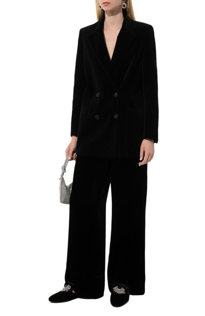 Лаконичные брюки с двумя боковыми карманами и широким эластичным поясом станут основой и дневных, и вечерних образов. Например, наши стилисты предлагают носить модель из тонкого струящегося текстиля с жакетом, надетым на голое тело, и туфлями.