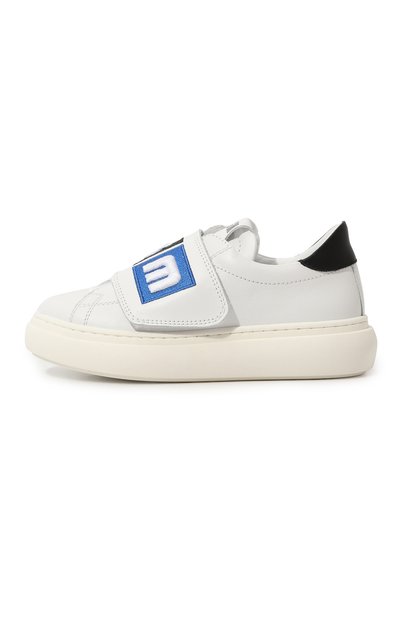 Для пошива белых кедов с перфорацией использовали мягкую гладкую кожу с легким блеском. Верх соединили с широкой подошвой рантовым методом, поэтому модель прослужит долго. Чтобы ребенок мог надевать и снимать обувь самостоятельно, привычную шнуровку заменили ремешками с застежками велкро. О прин адлежности марке говорят золотистый логотип сбоку и изображение пальмы на зеленом заднике.