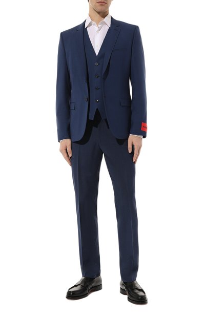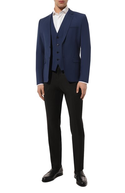 Темно-синий жилет выполнили из мягкой полушерстяной ткани с приятной на ощупь фактурой. Модель из такого материала с плотным переплетением тонких нитей долго сохраняет безупречный внешний вид и не ограничивает движения. Сзади изделие с прорезными карманами дополнили ремешком, позволяющим отрегулировать посадку на талии.