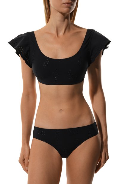 Черные плавки выполнили из мягкой шелковистой микрофибры, которая оптимально тянется и плотно облегает фигуру. Пояс у модели сделали максимально незаметным, а швы плоскими, поэтому такое лаконичное изделие подружится с любым бра.