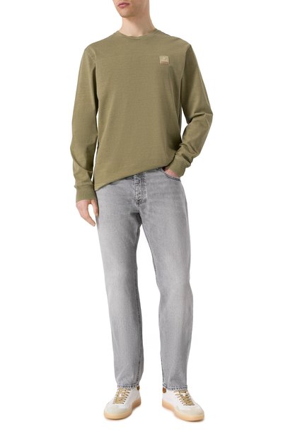 Лонгслив Daposo кроя Relaxed fit выполнили из хлопкового джерси. Спереди модель с круглой горловиной и манжетами в рубчик украсили прорезиненным логотипом в тон.