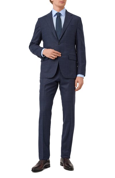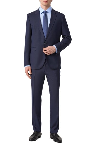 Голубая однотонная сорочка – не менее формальная альтернатива классической белой. Модель с воротником кент мастера марки, основанной Хуго Фердинандом Боссом, сшили из тонкого хлопкового поплина с добавлением стрейчевых волокон. Материал почти не мнется, сохраняя безупречный вид даже после хранения вещи в багаже, и оптимально тянется, делая посадку по фигуре комфортной.