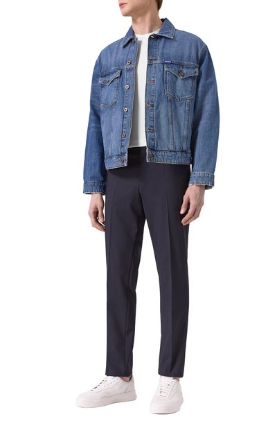 Прямые темно-синие брюки в исполнении команды марки, основанной Хуго Фердинандом Боссом, – удачный пример комфортной и практичной одежды на каждый день. Для пошива модели использовали тонкий эластичный трикотаж из прочного шелковистого полиэстера. Изделие не сковывает движения, почти не мнется, не вытягивается со временем и не требует особенного ухода, а за удобную посадку на талии отвечает регулируемый пояс-кулиска.