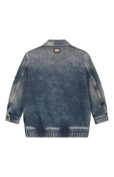 Синюю джинсовую куртку, представленную эксклюзивно в ЦУМе, сшили из плотной хлопковой ткани, которая не мешает воздуху циркулировать, а с каждой стиркой становится мягче. Модель с регулируемыми ремешками на поясе декорировали небольшими потертостями на швах. Изделие с брендированной пластиной сзади застегивается серебристыми болтами.