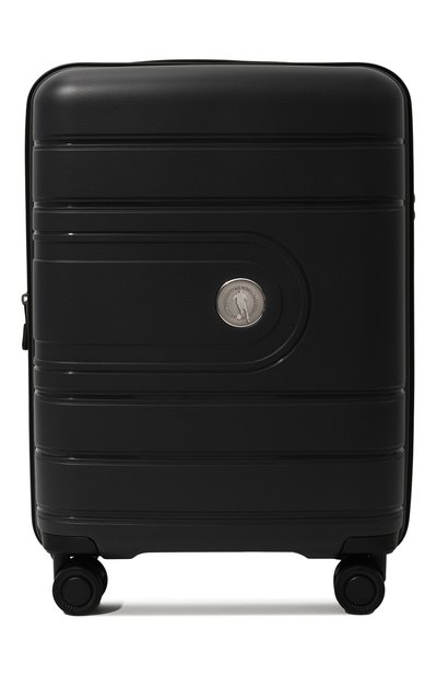 Черный чемодан выполнили из легкого фактурного полипропилена, который славится своей прочностью. Это свойство усилили горизонтальными ребрами жесткости, поэтому изделие не боится даже сильных ударов. Внутри предусмотрели два основных отделения, удерживающие ремни, карман на молнии и несессер. Аксессуар с четырьмя поворотными колесами застегивается кодовым замком с функцией TSA.