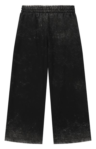 Для пошива свободных черных брюк использовали похожий на мягкую кожу материал, который состоит из двух слоев. Сверху — пластичный полимер с характерным блеском. С внутренней стороны — шелковистая тонкая вискоза, которая приятно ощущается на теле и пропускает воздух. Модель дополнили широким поясом-резинкой, двумя боковыми прорезными и задним накладным карманом с фирменным числовым кодом в тон.