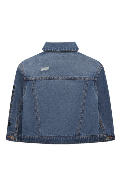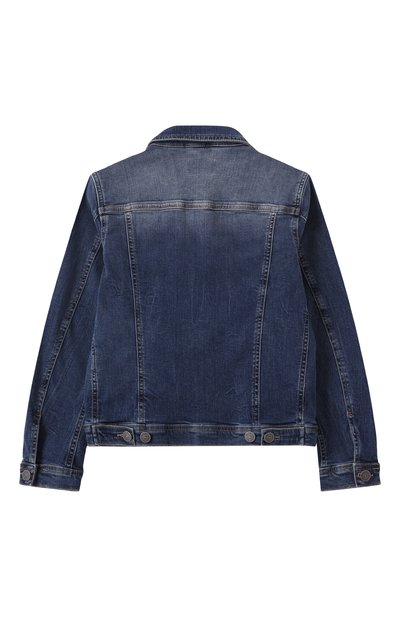 Синяя куртка с боковыми и нагрудными карманами будет уместна в прохладную погоду. Модель сшили из плотного денима, который не продувается легким ветром и сохраняет тепло внутри. Декоративные потертости и заломы органично смотрятся на хлопковой ткани, а небольшой красный патч с логотипом создает акцент на планке с пуговицами.