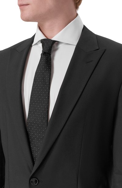 Однотонный галстук универсального черного цвета удачно дополнит образ любого уровня сложности. Для создания модели с эластичным швом на внутренней стороне использовали мягкий плотный шелк с характерным блеском. Аксессуар почти не мнется, быстро восстанавливает форму и не требует особенного ухода.