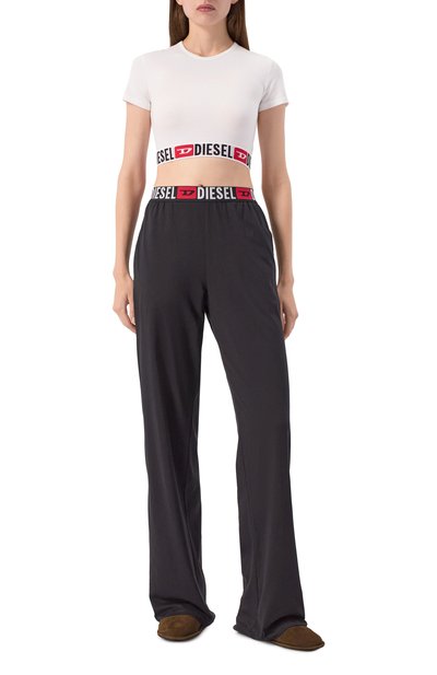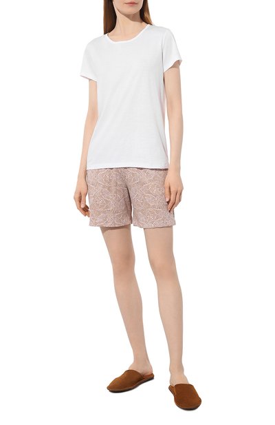 В белой футболке из тонкого джерси будет комфортно и днем, и ночью. Микс нежного хлопка и эластана отлично пропускает воздух и оптимально тянется, а свободный крой со спущенной линией плеч не ограничивает движения. Сбоку расположили изображение плюшевого медведя, которое дополнили логотипом.