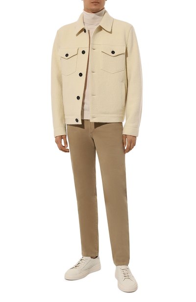 Для пошива бежевых брюк использовали мягкий хлопок с добавлением гладкого шелка, который придает полотну прочность и благородный блеск. А за счет эластана в со ставе материал немного тянется. Идеальную посадку по фигуре создает тщательно выверенный зауженный крой с небольшим V-образным вырезом на поясе сзади. Шлевку украшает съемный фирменный брелок с маской Пульчинеллы, олицетворяющей приверженность марки итальянским традициям качества.