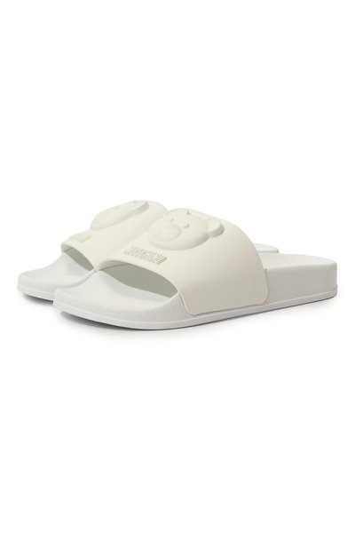 Однотонные шлепанцы украсили объемным логотипом и фирменным медвежонком Teddy Bear на широкой союзке из эластичного полимера. Пару дополнили легкой резиновой подошвой, которая мягко амортизирует каждый шаг и меньше скользит на влажных поверхностях.