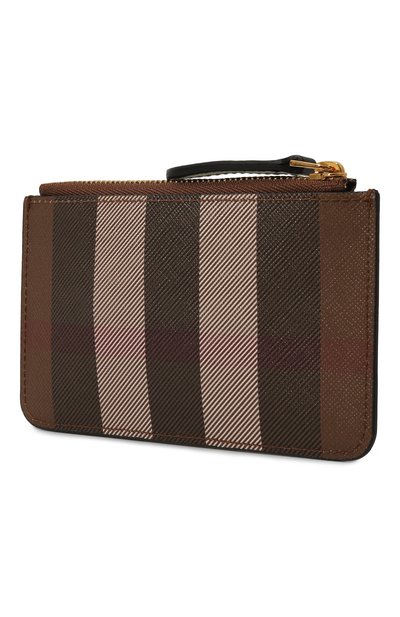 Темно-бежевое портмоне в три сложения изготовили из плотной телячьей кожи, фактуру которой подчеркнули легким блеском. Внутри — отделение для купюр и чеков, четыре слота для кредитных карт и карман на молнии, в котором удобно хранить монеты. Модель дополнили магнитным замком с выгравированным логотипом бренда