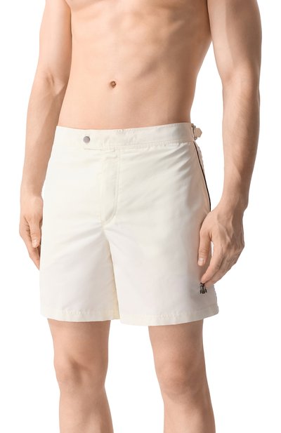 Плавки-шорты с боковыми и задним накладным карманами украсили вышитой эмблемой Solomeo сбоку. Посадка модели из быстросохнущего полиэстера регулируется эластичным поясом-кулиской.
