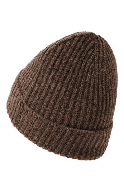 Темно-зеленая шапка бини хорошо согревает, поддерживая оптимальный микроклимат. Однотонный лаконичный аксессуар выполнили фактурной вязкой из мягкой пряжи на основе легкой шерсти и нежного кашемира, полученного из вычесанного вручную подпушка высокогорных коз. Дополнительно уши от ветра закрывает широкий отворот.