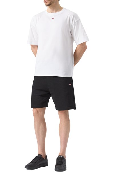 Черные кеды Area Lo изготовили из мягкой гладкой кожи с легким блеском. Этому материалу противопоставили бархатистую замшу, из которой выполнили фигурные накладки на мысе и заднике. Для отделки использовали плотны й текстиль. Сбоку модель украсили небольшим золотистым логотипом бренда.
