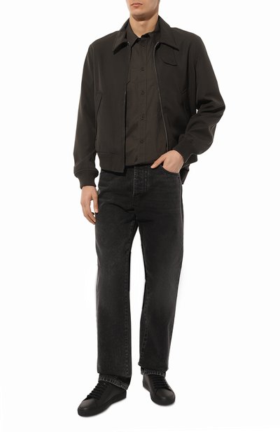 Черные кеды Area Lo изготовили из мя гкой гладкой кожи с легким блеском. Этому материалу противопоставили бархатистую замшу, из которой выполнили фигурные накладки на мысе и заднике. Для отделки использовали плотный текстиль. Сбоку модель украсили небольшим золотистым логотипом бренда.