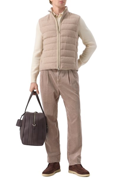 Кремовый кардиган из коллекции Oasi сделали похожим на рубашку с отложным воротником. Для изготовления модели использовали тончайший кашемир из пуха горных коз, поэтому она почти ничего не весит и при этом поддерживает оптимальный микроклимат. Лаконичное изделие, изготовленное в заповеднике Oasi Zegna в Итальянс ких Альпах, застегивается пуговицами из перламутра.