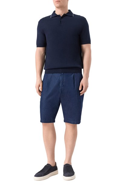 Синие шорты станут идеальным выбором в теплую погоду. Для пошива прямого изделия длиной до колена использовали тонкий мягкий лен, который особенно хорошо пропускает воздух, поддерживая комфортный микроклимат. Широкий пояс-кулиска из трикотажа в тон помогает отрегулировать посадку на талии.
