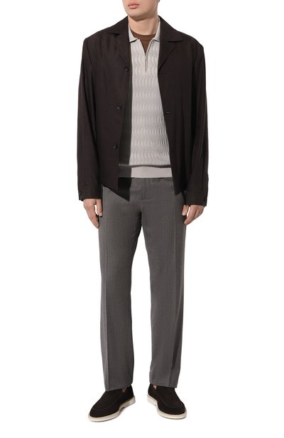 Бежевое поло с полосатым фактурным узором, застегивающееся молнией вместо привычных пуговиц, легко впишется в образы любой палитры. Лаконичную модель выполнили из тонкого хлопкового трикотажа с шелковистой блестящей поверхностью, который будет отлично пропускать воздух, поддерживая комфортный микроклимат. Края отложного воротника и манжеты коротких рукавов подчеркнуты узким контрастным кантом.