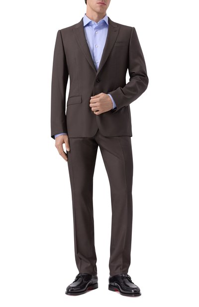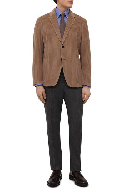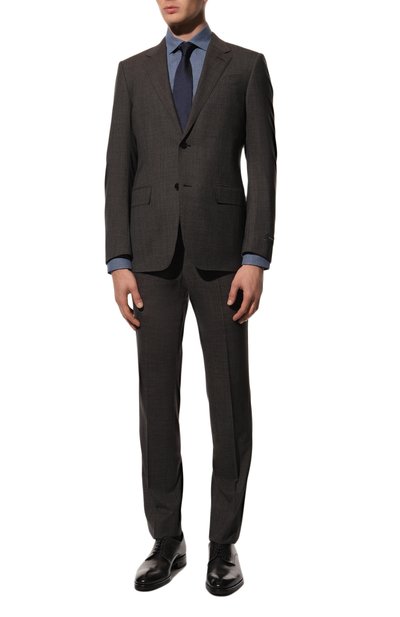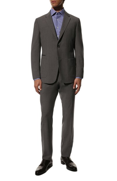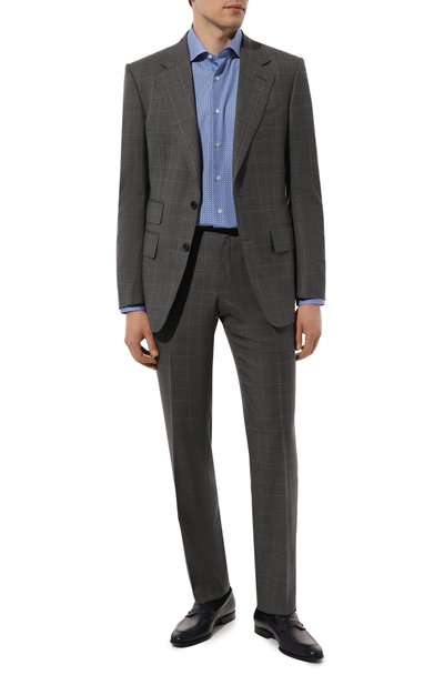 Мелкая синяя клетка слегка снижает формальность сорочки с воротником акула, но не выводит ее за рамки строгого дресс-кода. Тонкий поплин из нежного отборного хлопка, обработанного для придания эластичности, хорошо пропускает воздух и почти не мнется. Модель застегивается восьмиугольными перламутровыми пуговицами.