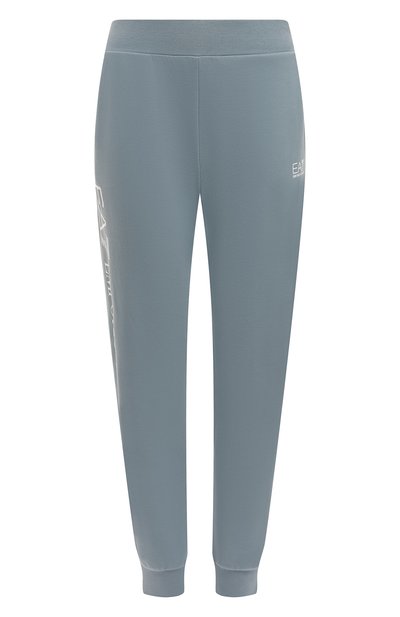 Голубые джоггеры с широким эластичным поясом — удачная основа комфортного образа, например, с белыми кедами и футболкой, а также с курткой в тон. Модель с двумя боковыми карманами сшили из мягкого хлопкового трикотажа стрейч. О принадлежности бренду напоминают белые логотип и эмблема.