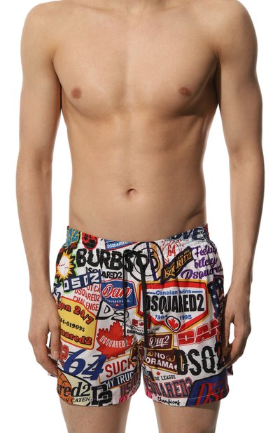 Разноцветные плавки-шорты с широким эластичным поясом-кулиской и двумя врезными карманами сшиты из гладкого матового нейлона с принтом из логотипа марки, стилизованным под граффити. Легкая модель дополнена внутри мягкой сетчатой подкладкой, не дающей влажной после купания ткани прилипать к телу.